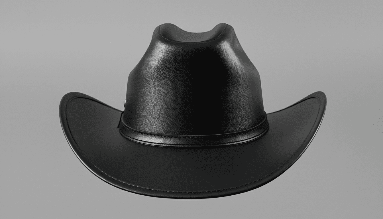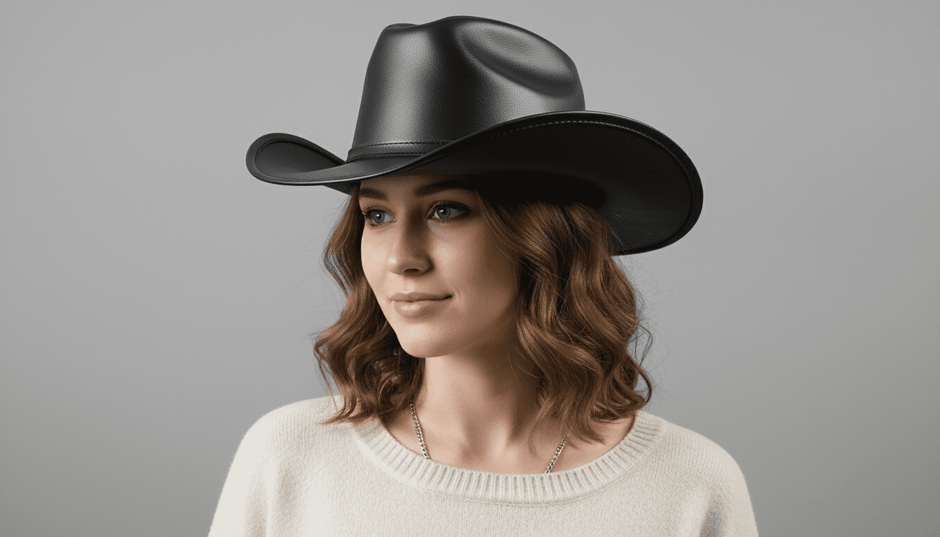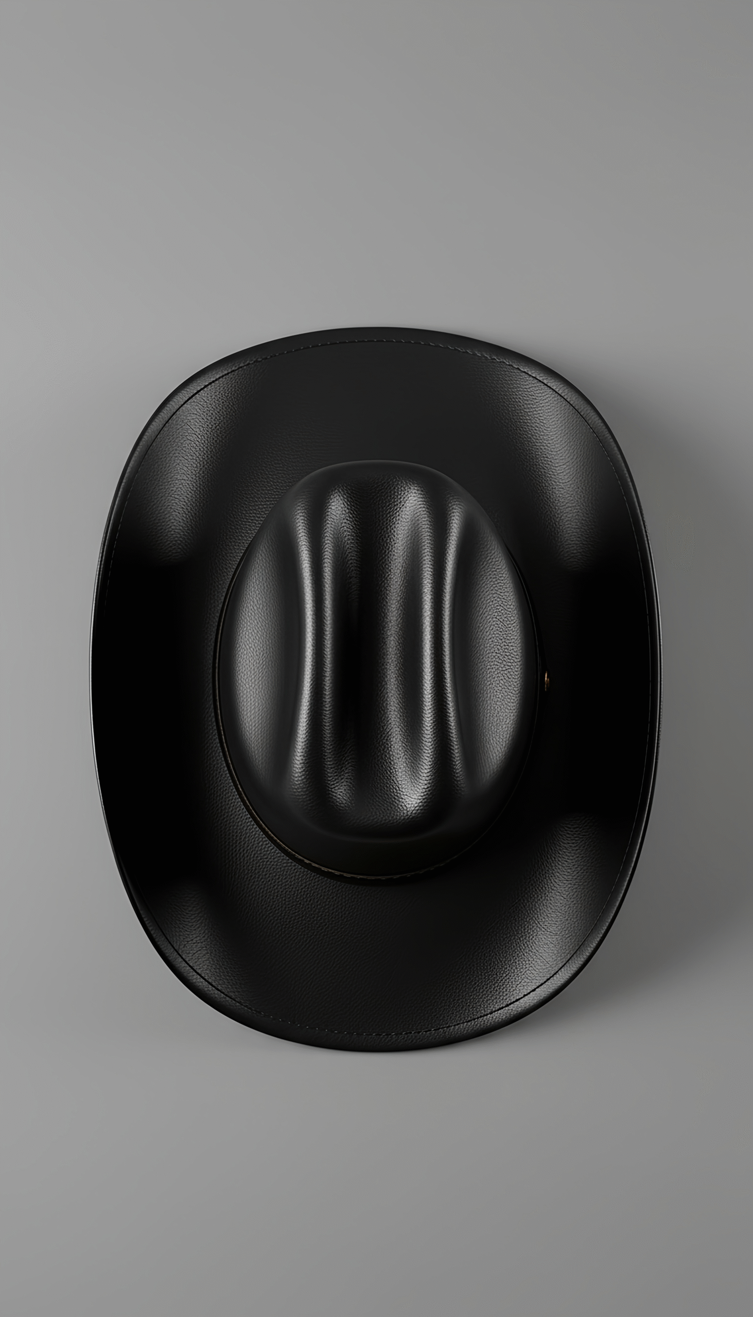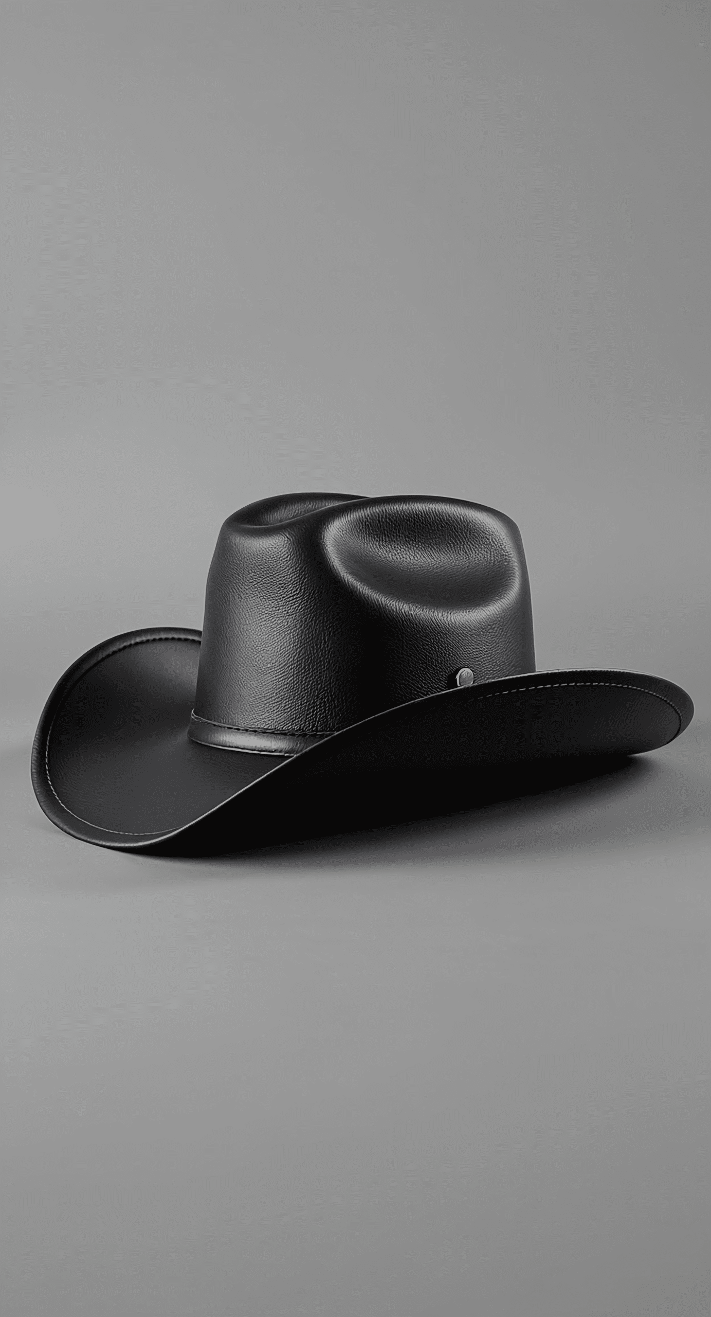 This black leather cowboy hat features a smooth, semi-matte finish with a deep crown and wide, gently curved brim for a bold and modern Western look. Crafted from high-quality genuine leather, it offers both durability and comfort. Its structured shape holds firm while maintaining flexibility, making it ideal for everyday wear or statement styling.